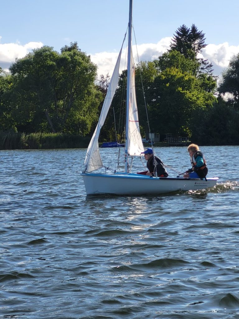am Mittwoch, 20.08.2025, fand wie in den Vorjahren das Schnuppersegeln auf dem Kellersee statt: von ursprünglich 10 angemeldeten Kinder sind aufgrund der Verlegung wegen „Schlechtem Wetters“ 4 Kinder zum Segeln gekommen.