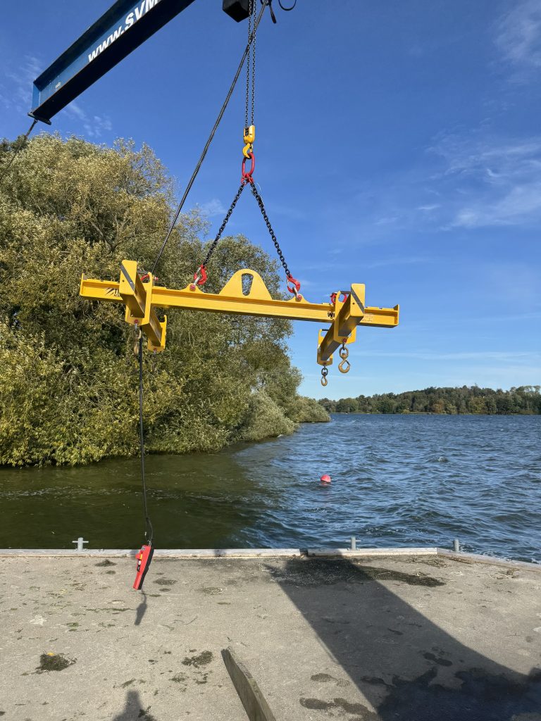 letzte Woche wurde die Traverse ausgetauscht. Seitdem haben wir eine Traverse für unseren Kran, bei der die Breite angepasst werden kann, um Boote schonender zu kranen.